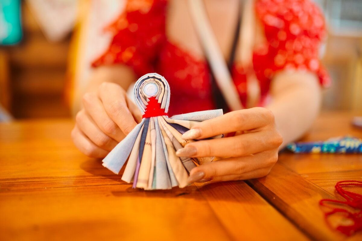 وأخيرًا ، كان ريد هيل ينتظرنا. دحرجنا بيض مصبوغ وصنعنا أمنية. وبعد ذلك لعبوا اللعبة ورقصوا مرة أخرى. وهنا يبدو أن العطلات قد انتهت ... لكن تأتي الحرفيين ليوبوف سيرجيفنا وتدعو الجميع لصنع دمية تميمة. أثناء طي قطع القماش ونسجها في خيوط ، أخبرتنا عن كعكة براوني الخاصة بها فانكا ، التي تعيش هنا في ورشة العمل. ذهبنا لنلقي التحية - لم يخرج ، لكنه لم يكن ضد الضيوف أيضًا.