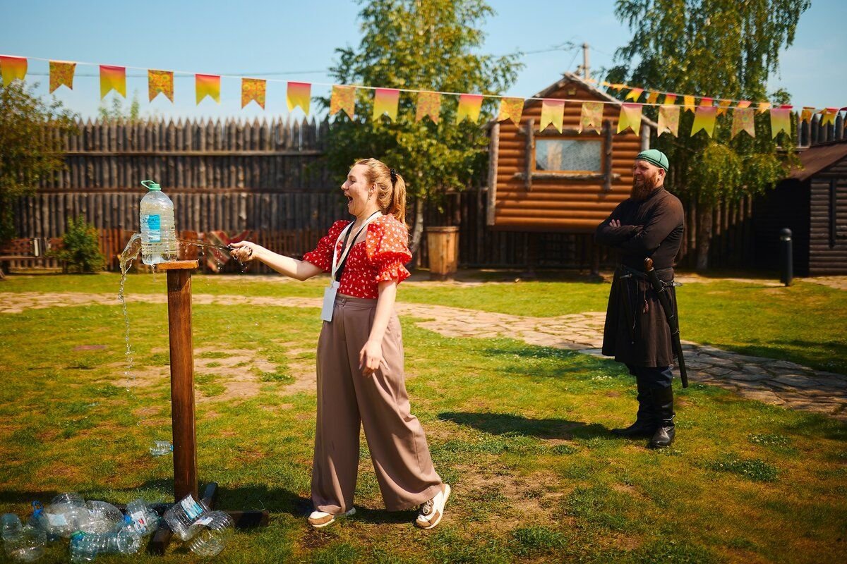 وهناك سيدة الكرنب. أوه ، بويار! الجمال مصبوب ، القرمزي مع الشفاه ، الحاجبان متحالفان ... طلبت المساعدة ، لهذا بدأت في معاملتنا بالكاسترد - من مرجل على شكل Serpent-Gorynych. نحن نمضغ كلتا الخدين ، ثم يأتي إلينا القوزاق الوراثي ويعرض علينا التدرب بالسيف. أحسنت صنعًا وركضت الفتيات على silushka وأظهر براعتهن. مع عدة محاولات ، انتهوا من الزجاجات ، ثم أخرج Mityai خنجرًا - عرض أن يخترق زجاجة بخمسة لترات. خرجت الشابة الأكثر رقة وأظهرت مهارتها. ثم ، على شاي إيفان العطري ، تفاخر الكثيرون وتحدثوا. ضحكوا كثيرا وذهبوا إلى الثلج البكر.