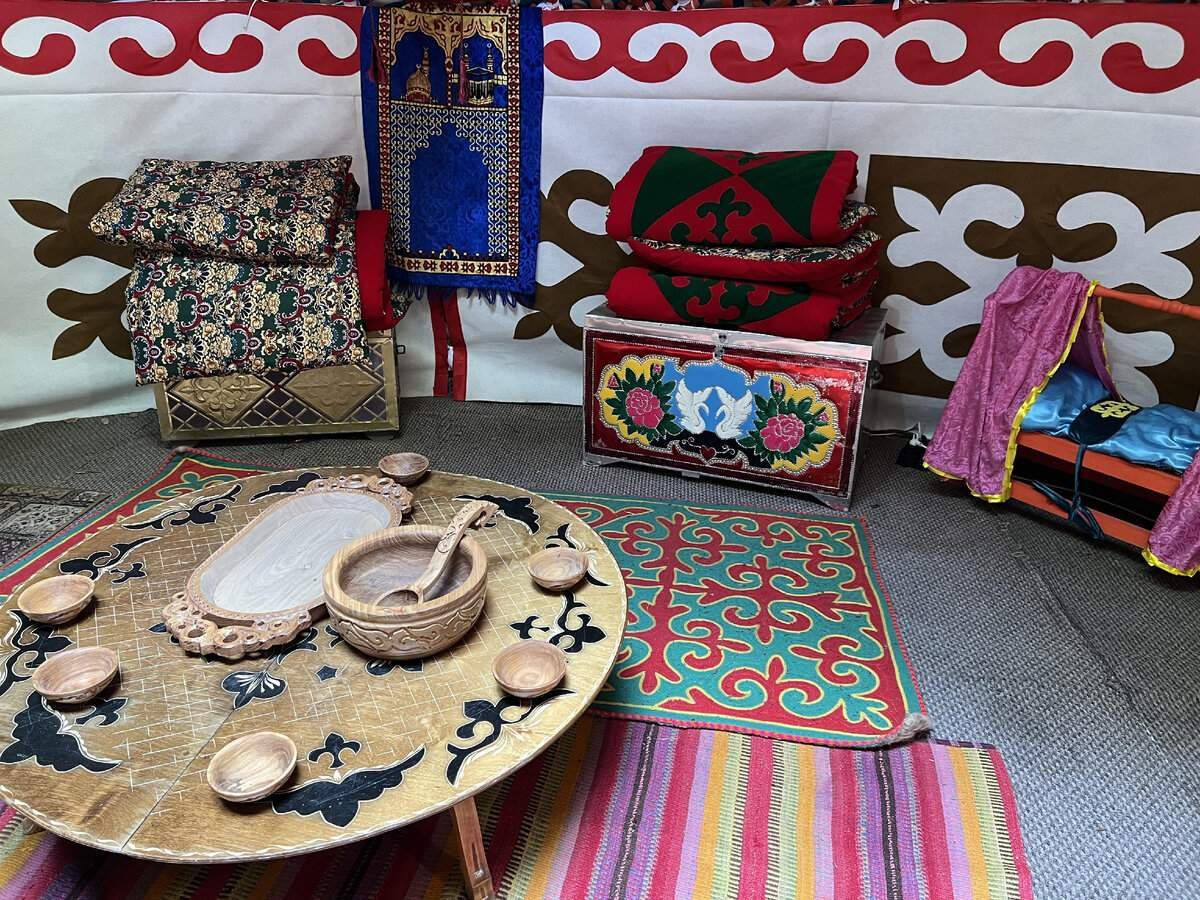 داخل اليورت والشوما ، تم إعادة إنشاء الزخرفة الحقيقية لتلك المساكن التي لا يزال البدو يستخدمونها: هذه هي السجاد والمراتب وجلود الحيوانات والموقد. كان من الممكن أيضًا ارتداء الملابس التقليدية لشعبي كازاخستان ونينيتس.