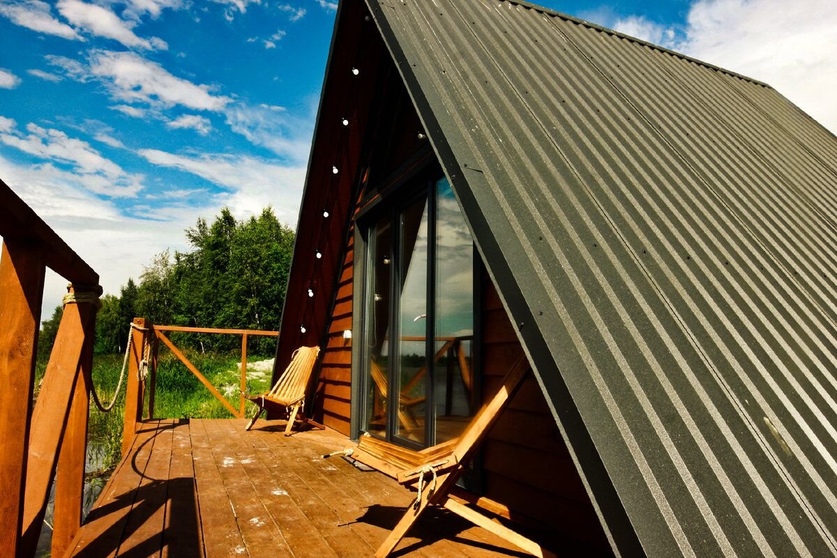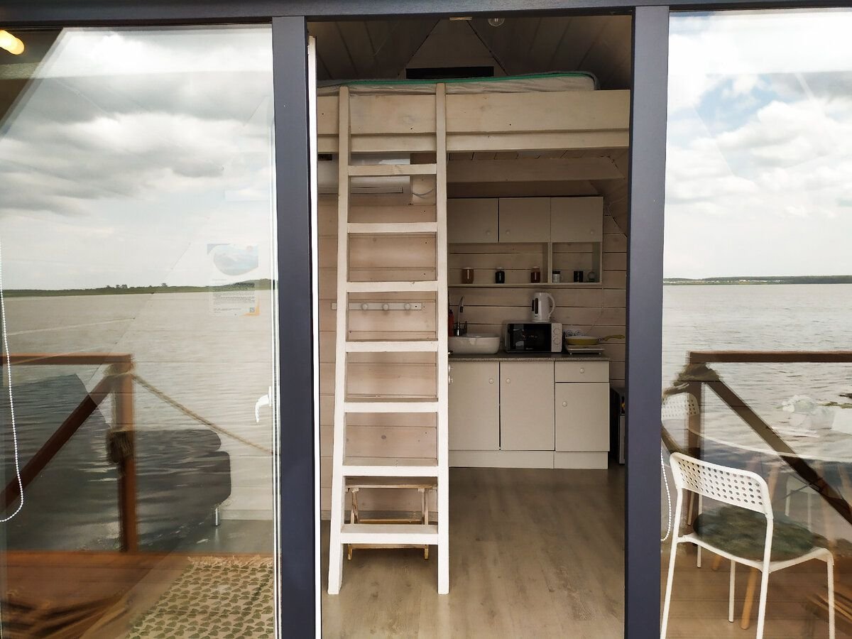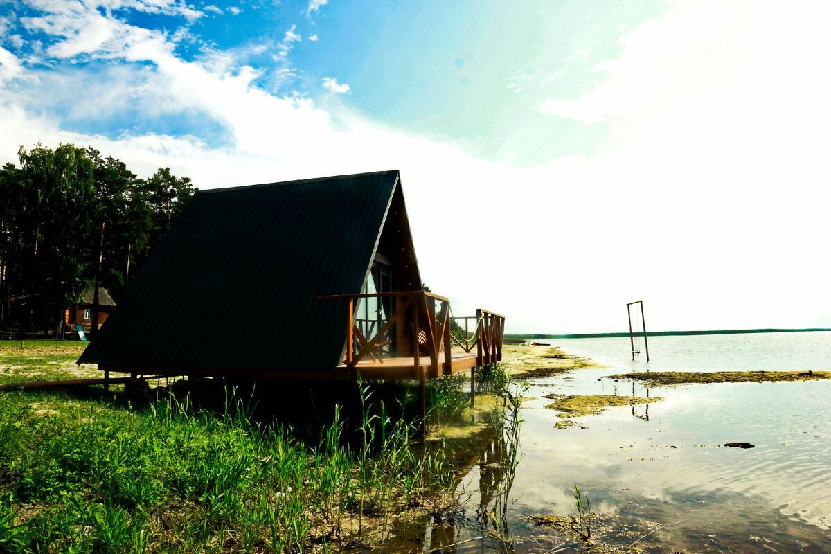 على الشاطئ يقف Athabasca A-frame الأنيق ، الذي سمي على اسم البحيرة الكندية الشهيرة. تم تصميمه كمنزل على الماء ، ولكن هذا الصيف جفت Singul ، والآن تلامس البحيرة أكوام الحديد فقط. ومع ذلك ، فإن هذا لا يفسد الجو على الإطلاق: النوافذ البانورامية تفتح فرصًا واسعة للاستمتاع بغروب الشمس ، ويسمح لك القرب من الماء بالصيد دون النزول إلى الشاطئ.