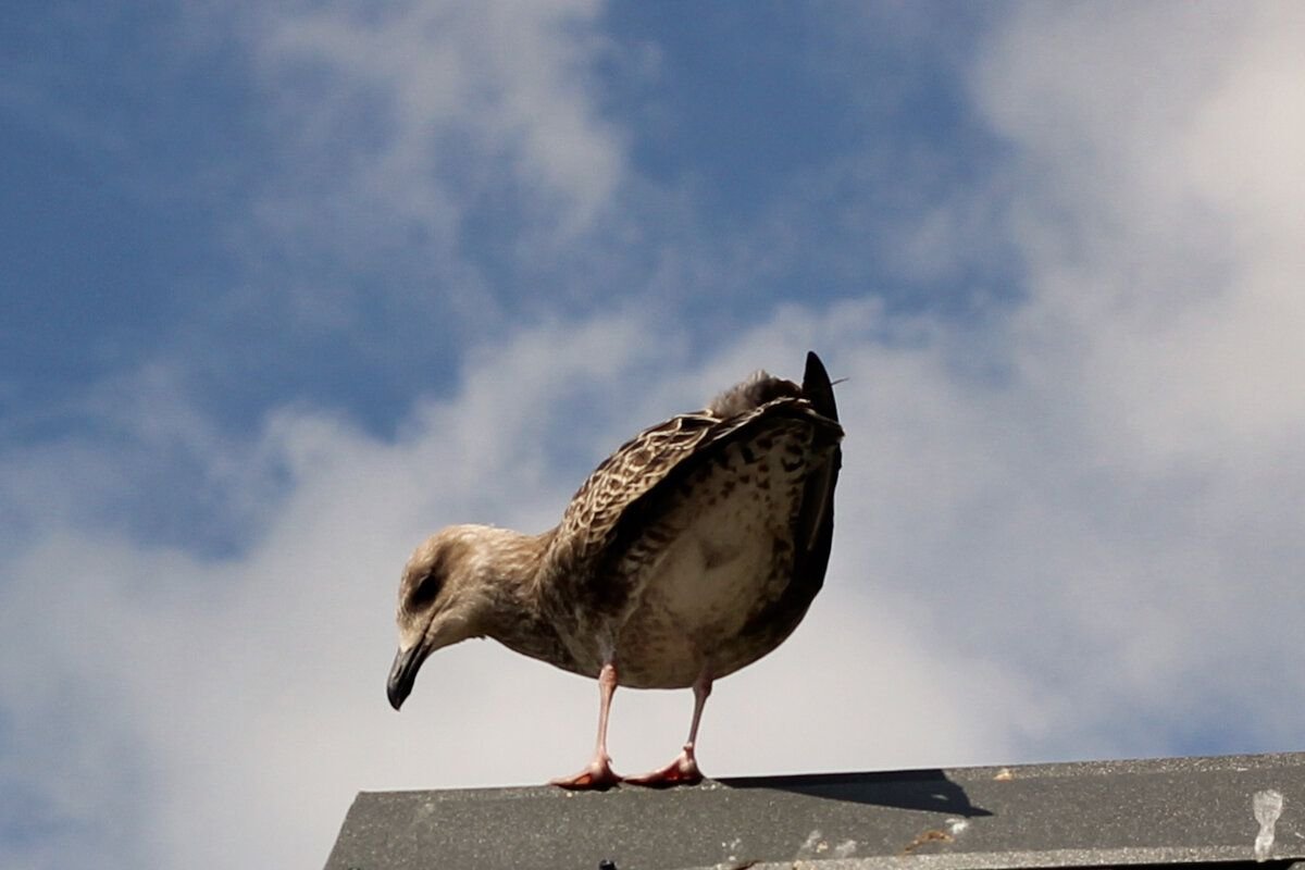 استقر ساكن جديد بجوار المنزل على جزيرة صغيرة. جاء الطائر إلى الحديقة البيئية سيرًا على الأقدام وأخذ يتوهم هذا المكان. على ما يبدو ، بسبب الإصابة ، لا يستطيع الطائر الطيران كثيرًا.